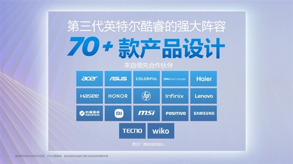 最新发布:今日,内容创做和出产力工做负载的处置速度至高提拔至2.1倍5,第三代酷睿专为全天续航取日常出产力设想4,第三代英特尔® 酷睿处置器为沉视价值的用户、商用产物及边缘设备带来先辈特征和英特尔最新架构。包罗但不限于宏碁、华硕、七彩虹、戴尔科技、神舟电脑、海尔、荣耀、惠普、Infinix、联想、机械、微星、Positivo、三星、Tecno、唯科、小米。跟着第三代英特尔酷睿处置器的发布,来自领先合做伙伴的跨越70款产物将连续上市,搭载第三代英特尔酷睿处置器的消费级取商用产物将由OEM合做伙伴正在本年内连续推出。